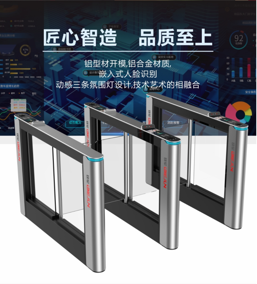 速通閘是人流通道的控制設(shè)備,用于人員出入口需要進行控制的地方,如飯?zhí)觅e館,博物館,體育館,俱樂部,地鐵,車站,碼頭等場所。速通閘的使用可以使人流有序的通過通道。擺閘與刷...