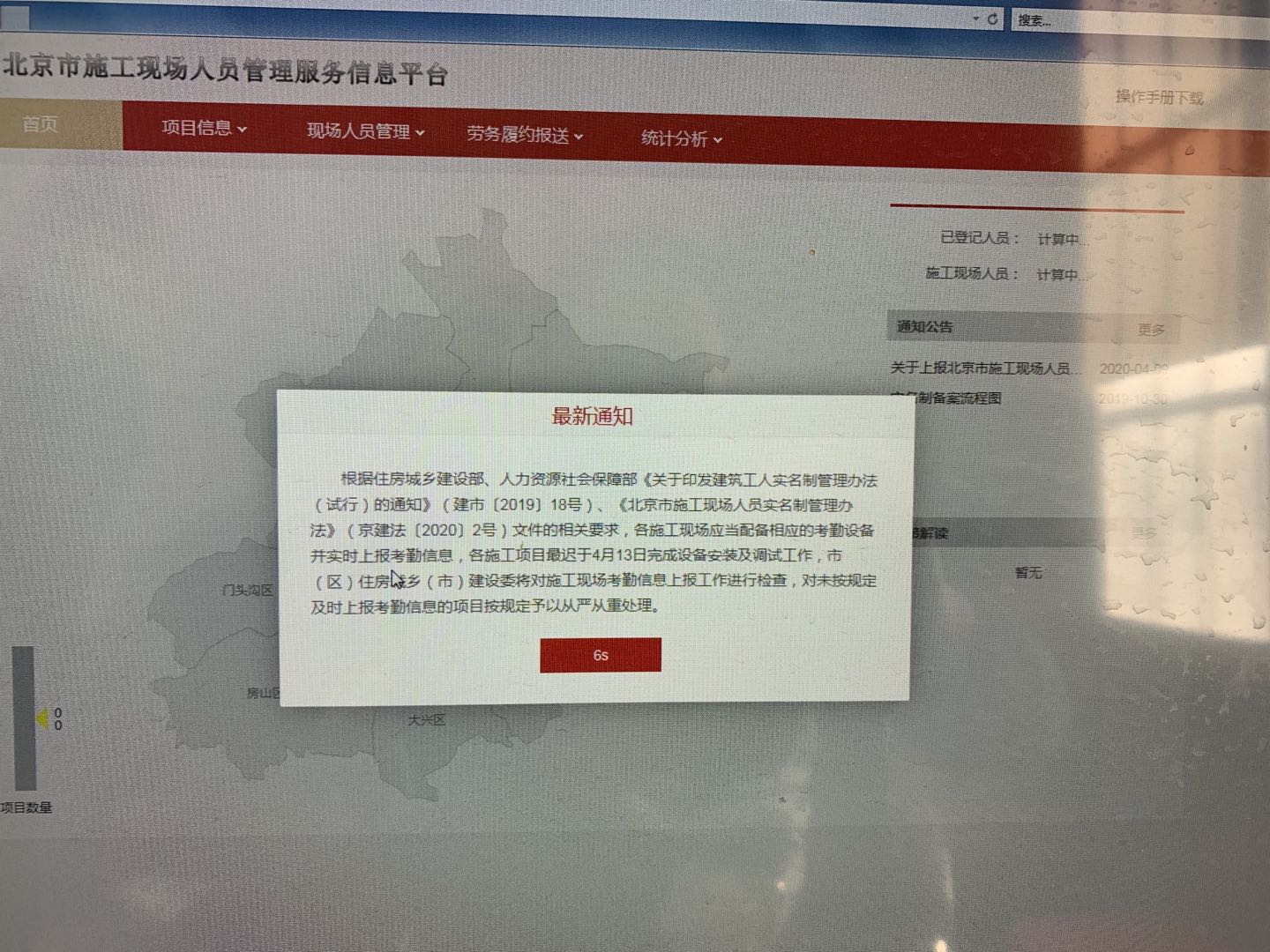 根據(jù)住房城鄉(xiāng)建設(shè)部、人力資源社會保障部《關(guān)于印發(fā)建筑工人實名制管理辦法(試行)的通知》(建市【2019】18),《北京市施工現(xiàn)場人員實名制管理辦法》(京建法【2020】2號)文件的相關(guān)要求,各施工現(xiàn)場應(yīng)當配備相應(yīng)的考勤設(shè)備并及時上報考勤信息。