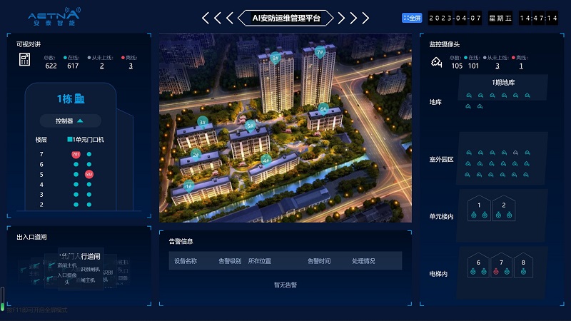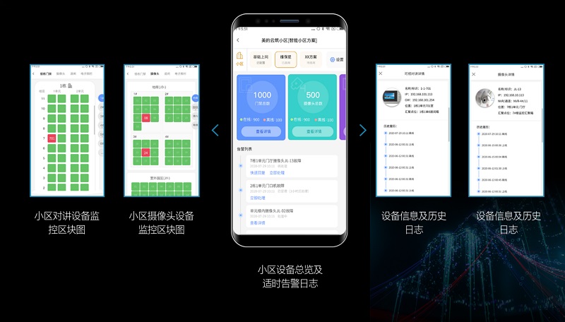 設(shè)備離線和恢復(fù)雙端主動告警 一個屏幕可視化監(jiān)控小區(qū)所有IP設(shè)備 維保人員可遠(yuǎn)程通過APP對小區(qū)