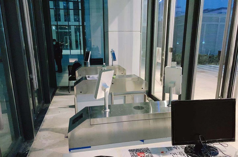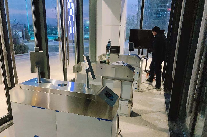 大廈要求對每一個進出大廈人員進行人臉識別測溫,做到精準管控。我們?yōu)榇髲B提供了防撞擺閘和測溫人臉識別系統(tǒng)。
