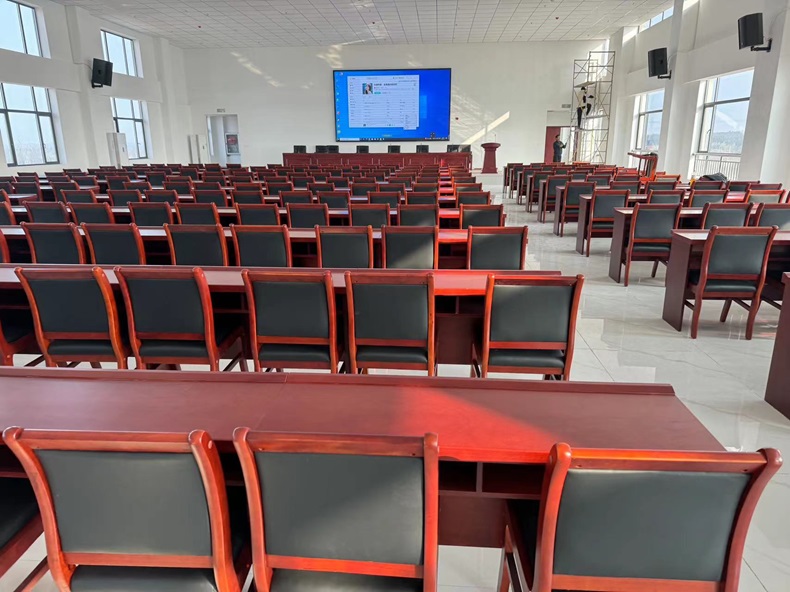 某單位需要建設(shè)一個能容納500人的會議廣播系統(tǒng),該系統(tǒng)主要設(shè)計的內(nèi)容有小間距LED全彩顯示屏、大功率喇叭、會議話筒、調(diào)音臺、視頻會議攝像頭、MCU等,該會議室面積有1200平米,我們安裝了8只會議擴音喇叭,采用4臺功放進行調(diào)節(jié),大屏采用P1.8室內(nèi)全彩LED顯示屏采用封裝方式為SMD表貼,一平方米有160000個像素點數(shù),每個像素點之間的點間距為1.8mm;掃描方式為32掃.視頻會議顯示和會議擴聲效果顯著,完全優(yōu)于客戶的預(yù)期效果。